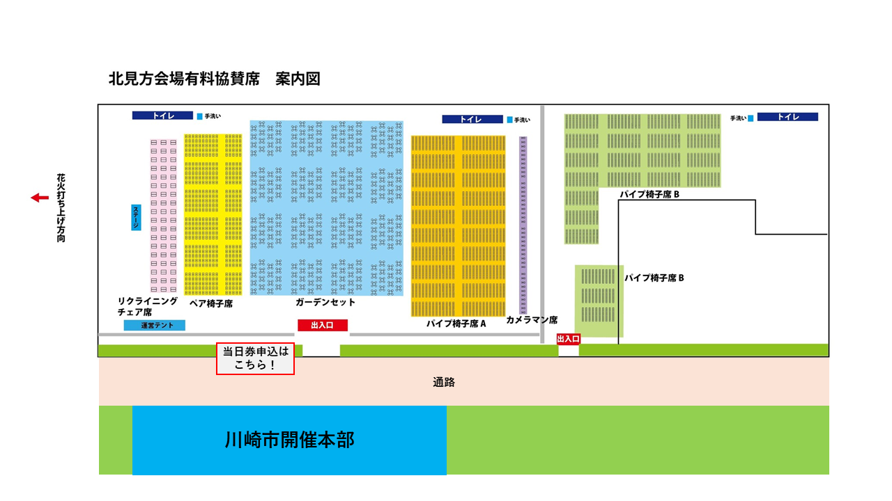 花火大会当日、現地で有料協賛席のお申込みをいただけます。
