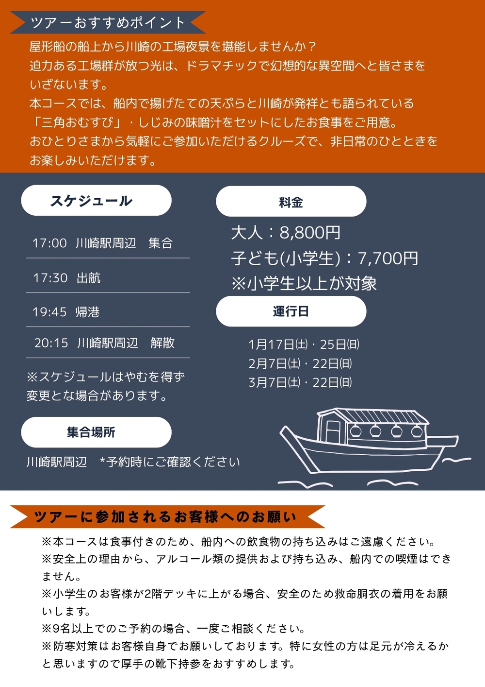 期間限定運航!『川崎工場夜景 食事付き屋形船クルーズ』